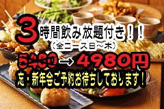 \忘年会・新年会や接待など各種宴会ご予約承り中♪/ ◆国産地鶏の炭火焼き◆炭火で焼き上げた焼き鳥は間違いない美味しさ!! ◆最大3時間飲み放題付きコース<破格!>3500円~! 3500円~6000円まで予算に合わせてお選びいただけます♪ ※土・日・祝日はコース限定で16時から受付可能です(席...View More »