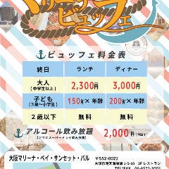 世界の料理・ソフトドリンク多数 2時間制 ソフトドリンク飲み放題 ※アルコールは別料金発生 料金表 大人(中学生以上) 終日2,300円税込 ディナー3,000円税込 子ども(3歳~小学生)終日ランチ150円×年齢 税込 ディナー200円×年齢 税込 (例:子ども8歳×150円=1,200円税...View More »