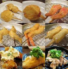 ◆サクッとつまめる揚げたて串カツ 鶏ももや野菜などの定番メニューだけではありません! 牛希少部位のメガネやナマズ、スイーツ系の串など… お酒と一緒につまめるメニューを多彩にご用意しています。 ◆豊富なドリンクメニュー シャンパンは5,000円からご用意。 迷ったら当店のオリジナルシャンパンがお...View More »