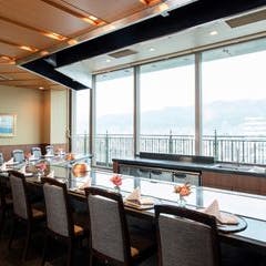 呉市街と休山を眺めながら、目の前で豪快に焼き上げる最高級ブランドの和牛や車海老などをお召し上がりいただけます。View More »