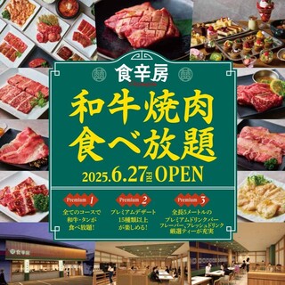 《焼肉食べ放題3コース》 ■スタンダードコース(82品) 3,828円 「迷ったらコレ!食辛房の美味しさを気軽に満喫。定番から人気メニューまで楽しめる、欲張りコース。」 ■牛タンプレミアムコース(104品+ワゴンデザート) 5,038円 「口福の極み!とろける旨さの牛タン尽くし。希少部位まで味...View More »