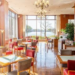 ホテルニューオータニ佐賀1階/明るい店内では、緑やお濠を眺めながら食事やティータイムをお過ごしいただけます。View More »