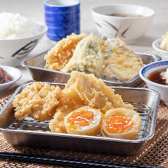 種類豊富な天ぷら定食の数々・・☆ リーズナブルな価格でおいし~い 揚げたて天ぷらが楽しめます♪ 定食メニューはイカ塩辛と漬物食べ放題!! 1名様からご家族様までお気軽にご来店ください!View More »