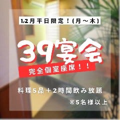 平日限定のめちゃくちゃ破格なコースです! お得な宴会コースのご案内です! \1、2月平日限定/ 完全個室座席!『39宴会』 ◆料金:3,900円 ※5名様以上 ◆料理5品+2時間飲み放題付き ・枝豆の浅漬け・とろたく韓国のり・ポテトフライ・チキン南蛮・もりそば ※仕入れ状況によりメニュー...View More »