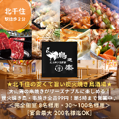 ★ネット予約人数に応じて楽天ポイントが貯まる★ 【駅近】 北千住駅から徒歩2分と好立地!昼12時から早朝5時まで営業! 【看板メニュー】 炭火で丁寧に焼き上げる自慢の串焼きが全品99円(税込109円)でお楽しみ頂けます! 軽く飲みたい、いろんな種類の串焼きを気軽に食べたい、大人数でのご宴会、そ...View More »