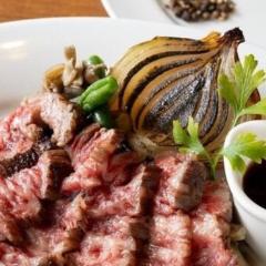 ■鮮魚のお造りと黒毛和牛の炙りを堪能 その日の新鮮な鮮魚を使った刺身盛りと、香ばしく炙った黒毛和牛がメインの贅沢な宴会コース。 前菜から締めご飯、デザートまで、和の技が光る全品構成でボリュームも満足感も◎ ■香ばしさ広がる絶品和牛ステーキ 厳選した黒毛和牛を丁寧に焼き上げた和牛ステーキは、当...View More »