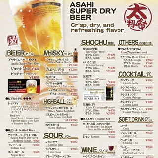 [元住吉駅]1杯いくらなんて細かいことと気にせず飲み放題で好きなだけ飲んでください!ビール、カクテル、焼酎、日本酒、ワインとお酒の種類も豊富で、お酒が苦手な人でもソフトドリンクで一緒に盛り上がりましょう!2時間3時間でも飽きることなく楽しめます。