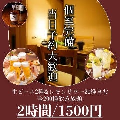 ◆逸品料理 お料理は100品以上! 流行りの炉端焼きやお刺身、焼き鳥、揚物や炒め物をはじめとした数々の人気居酒屋メニューが目白押し! ◆豊富なドリンク 生ビールや20種類のレモンサワー、10種類以上の日本酒など幅広くご用意! 飲み放題は川崎最大級の200種類がお楽しみいただけます。 ◆和の空間...View More »