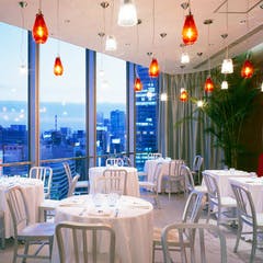 ムラーノグラスのシャンデリアと美しい眺望が広がるスタイリッシュな空間。 コンテンポラリーなイタリア料理と多彩なワインをご用意しています。View More »