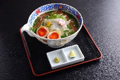 ふぐ独特の旨みと香りを大切に、じっくり煮込んで作り上げたスープは、 最後の一滴まで飲み干したくなる絶妙な美味しさ。 女性にも男性にもご満足いただける一杯です。 全粒粉を使用した、スープとの絡みが抜群な自家製麺のほか、低温調理の技法で仕上げた 七色豚チャーシューや養鶏場直送の美味玉を使用した味付...View More »