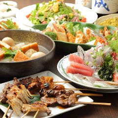 【2時間飲み放題付きコース】〆には土鍋ご飯or五島うどん 博多直送の新鮮鮮魚を心ゆくまで味わえる『海鮮コース』7,000円 やきとり5種盛りや稀少なミノ刺しがついた『やきとりコース』7,000円 【熟練焼き師が焼き上げるやきとり】 串に刺さればなんでも「やきとり」が博多流! プチトマトとチーズ...View More »
