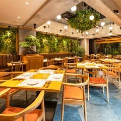目の前は小川が流れる綺麗な公園。解放感のある店内でランチもディナーもアラカルトで一品からチョイスできます。View More »