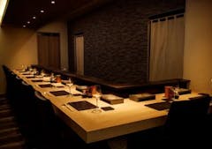 新宿駅から徒歩約4分。ゴジラロードのビルの一角と好立地にありながら落ち着いた木目調の雰囲気の店内。総合して鮨を楽しむ事に力を注いでおります。View More »
