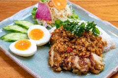 ◆タイ北部に位置するチェンマイの郷土料理 チェンマイ料理は野菜やハーブを使った健康的な料理です。 「ヤム・ジン・ガイ」 スパイスの効いたチキンのスープ 「カオ・ソイ」 ココナッツミルクを使ったカレーヌードル アラカルトで豊富にご用意しています!View More »