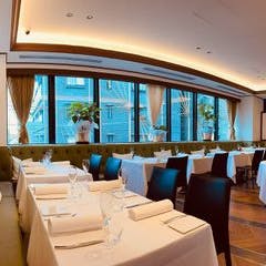 全面ガラス窓と吹き抜け天井に煌めくシャンデリアが彩るリュクスな空間 モーニングからディナーまで、シーンに合わせて多彩なメニューをご用意 【メインで選ぶディナーコース(税抜)】 迷ったらコレ!定番メニューが楽しめる『スタンダードコース』3,960円 【数量限定の人気メニュー】 肉汁たっぷり!「...View More »