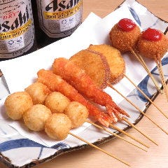 串揚げ40種類、串焼き30種類、季節のお刺身、その他焼き物・揚げ物を取り揃えた豊富なメニュー。 「ひとつひとつの料理を手作りで」をモットーに、地域の皆様に喜ばれるお店づくりを日々目指しております。 串揚げに使用しているパン粉は、香り高い"生パン粉"とキメ細かいパン粉をオリジナルで ブレンド「い...View More »