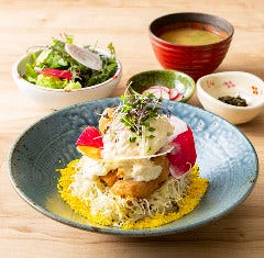 全国約50軒の契約農家さんと地元関西の生産者さんの自慢の野菜をたっぷり使ったお料理のお店 ディナータイムの名物「お野菜しゃぶしゃぶ」は、ふんだんに盛りつけたこれらの新鮮な野菜を濃厚な出汁にさっとくぐらせて召し上がっていただく逸品です。他にも自慢の野菜をたっぷり使ったお惣菜の数々をご用意。 お昼...View More »