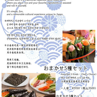 ★★★☆☆3.02 ■手巻き寿司5種セット税抜3150円 ■予算(夜):¥3,000~¥3,999View More »