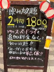 大阪府知事表彰★目の前のコンロで海鮮B B Qが楽しめるお店★ 一般的な居酒屋メニューや日替わりメニューもあり皆さんで楽しめます! ≪飲み放題2時間1800円!(税込1980)≫★料理は単品でOK、事前予約なしでOK 生ビールも追加料金なし!スーパードライに、酎ハイ、角ハイボールも全80種以上...View More »