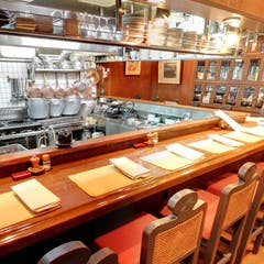 オープンキッチンにて、私共職人の作った料理を「おまかせコース(週替り)」として、洋食(フレンチ割烹)を召し上がって頂いております。View More »