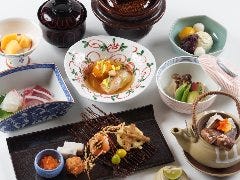 旬の新鮮な食材を使用し、職人が一品一品を丁寧に仕上げました。 郷愁を感じつつも、出会ったことのない記憶に残る、和の一皿をご堪能ください。View More »
