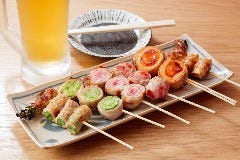 ◆新しい野菜巻き串専門店 新鮮野菜を豚バラで巻いた串は、彩り豊かで味わいも歯ごたえも爽やか! 定番の正統派から明太子などの変わり種まで種類豊富なメニューをご用意しており、いっぱい頼んでもヘルシーなのが最大の魅力となっております!当店自慢の野菜串巻き、肉巻き野菜、豚肉と新鮮野菜の最強タッグをぜひ...View More »