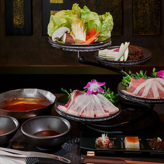 【アグー豚しゃぶしゃぶ】 沖縄の農園から直接仕入れしている『純血統アグー豚』は柔らかい肉質と脂身に旨味がたっぷり。 脂肪融点が低い為、口に入れるとすぐ溶けていきます。 繁殖力が低く体重は白豚の約半分と流通が難しく希少価値の高い品質です。 【素材にこだわる】 アグー豚は沖縄固有の貴重な在来豚です...View More »