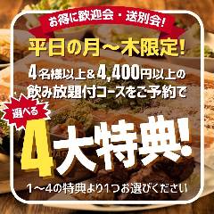 宴会ご予約承ります!月曜日〜木曜日はコースプランの飲みが放題が3時間!ゆっくりと過ごしていただけます! 毎週月曜日は超炭酸角ハイボール半額!火曜日は日本酒半額!水曜日は女性限定ドリンク全て半額!木曜日は生ビール半額!土曜日はグラスワインが終日半額になります! 毎月1日は日本酒1時間¥1000飲...View More »