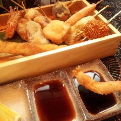 世界最高グレードの海老 天使の海老から季節の魚介、新鮮野菜、オリジナル創作串を 是非コース形式でご賞味くださいませ… おまかせ5本コース… 1100円 おまかせ10本コース… 2200円View More »