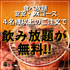 ≪News!≫ ●阪急茨木店限定!安安・DXコース4名以上でご注文で飲み放題が無料に! 阪急茨木店だけの特別コース!食べ放題安安コース・DXコースを4名以上でご注文頂くと、 ドリンク全品飲み放題が無料でついてくるお得なセットを開催中! (大人料金のお客様が対象です) 焼肉1皿290円(税込31...View More »
