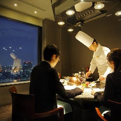 夜景を望むペアシートはプロポーズやお誕生日など記念日のご利用におすすめ。選りすぐりの食材とシェフ達のパフォーマンスをお楽しみください。View More »