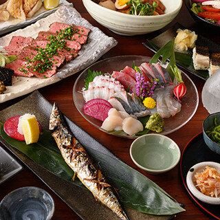 《全席完全個室》2名様~最大100名様まで!! -おすすめ(3h飲み放題付)宴会コースプラン- 季節を味わう直送鮮魚×和牛ハラミステーキ含む全7品『旬彩コース』5520円⇒4500円 刺身盛や炭火焼×和牛リブロースステーキ含全9品『饗宴コース』6980円⇒6000円 -お得なクーポン- 【団体...View More »