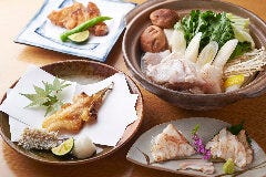 □コース 接待や会食・ご宴会など特別な日のお食事に最適な料理コースを3種ご用意。 □料理 “体と食を考える”健康的な食生活を意識し、美食を追求。 焼きふぐは、高タンパク・低カロリーの「ふぐ」を網焼きにする事で、さらにヘルシーに、 すっぽん丸鍋は漢方薬とも言われるほど体に良いすっぱんの成分と旨味...View More »