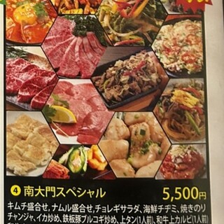 ■お肉屋さん(精肉店)が営む焼肉店の厳選コース 【5種 8品】5,000円コース ★おすすめ【6種15品】6,000円コース 【8種16品】8,000円コース ■飲み放題(2時間制)2,000円 飲み放題(2時間制)瓶ビール付き2,750円 ★飲み放題(2時間制)瓶ビール・生ビール付き...View More »