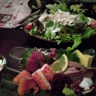 ■お食事会などにおすすめ!2時間飲み放題付きコース ≪イチ押し≫ ・豪快舟盛りと海鮮ちゃんこ鍋がついた特選コース 5,500円 ≪人気コース≫ ・まぐろ三種盛りと海鮮旨塩鍋がついた定番コース 4,000円 ・刺身四種盛りといかゴロ味噌バター鍋がついた満足コース 4,500円 【おすすめ料...View More »