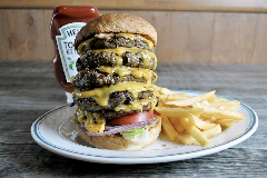 つなぎを使用しない100%ビーフのパティと オリジナルバンズを使用したバーガーを お召し上がりいただけます。 チーズは3種類からお好きなものをどうぞ◎ 迫力満点!SNS映え必須の モンスターチーズバーガーをぜひお試しあれ!View More »