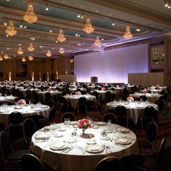 煌めくシャンデリア、庭園をモチーフにした壁面の画などが、舞踏会場をイメージさせる華麗な宴会場。様々な用途でご利用いただけます。View More »