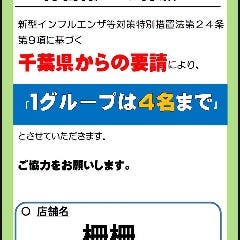 【個室席・半個室席をご用意しております】 他のお客様と十分にソーシャルディスタンスが確保出来る、個室席・半個室席をご用意しております。 【千葉県感染予防対策確認店】 消毒スプレー完備、お客様とスタッフの手指の消毒、椅子テーブルや各箇所の除菌を実施しております。 従業員はマスクを着用して従事して...View More »
