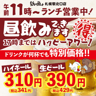 ★★★☆☆3.28 ■飲み放題OK!喫煙OK!昼飲みするなら『鶏よ魚よ札幌駅北口店』 ■予算(夜):¥2,000~¥2,999View More »