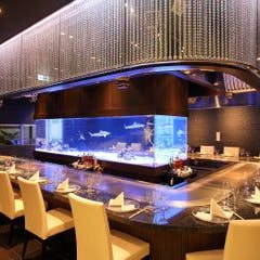 白を基調としたシンプルモダンな外観の「TEPPAN DINING 集」サメが回遊する巨大水槽を眺めながら、最高のお料理をお楽しみください。View More »