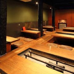 天然木の囲炉裏をご用意。黒毛和牛や牛タン、季節の魚を原木備長炭で炙り焼きいたします。ぜひご賞味ください。View More »