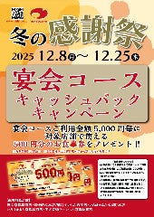 2025/10/1~ 秋・冬宴会コース始まります☆ 充実のお料理内容に飲み放題が付いた一押しのコースばかりです! 税込3,850円~6,600円まで!ご予算に応じてご対応いたします! 飲み放題無しのコースもございます。 ぜひ!宴会コースをチェックしてみてください♪ ★★★★★★★ 冬の感謝祭...View More »