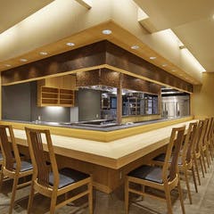風情ある石畳の入口を抜け店内に一歩足を踏み入れると、木の温もりに溢れたカウンター席からは季節を感じる中庭をご覧いただけます。View More »