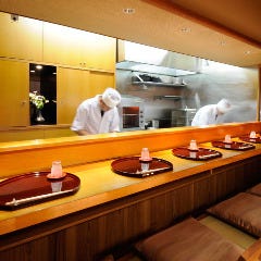 風情ある石畳の入口を抜け店内に一歩足を踏み入れると、木の温もりに溢れたカウンター席からは季節を感じる中庭をご覧いただけます。View More »