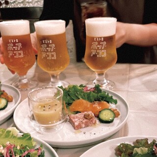 海外のバルのようなお洒落な空間―― ビールにあう、お料理をお楽しみください。 ~駅近で会社宴会にぴったり~ 店内フロア、個室ともに広い空間となっており、 ゆったりとしたお席へのご案内が可能です。 ◆大切な人との誕生日・記念日、カップルディナも。 パティシエ特製ケーキ、花束でお洒落にサプライズ!...View More »