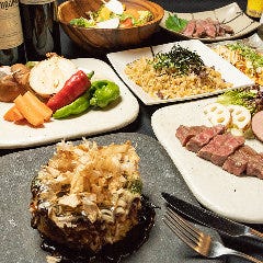 大阪のソウルフード、自慢のお好み焼き・焼きそばをメインに黒毛和牛や明石蛸、素材と味にこだわる鉄板焼き、アラカルトも楽しんでいただけます!●飲み放題付コースは3,800円~■1階半個室座敷席、広々とした2階座敷席◎和の雰囲気は大阪での接待・おもてなしにも最適です。お肉は黒毛和牛、魚介は明石産蛸や...View More »