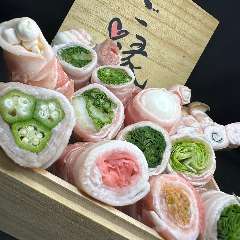 ◆新しい野菜巻き串専門店 新鮮野菜を豚バラで巻いた串は、彩り豊かで味わいも歯ごたえも爽やか! 定番の正統派から明太子などの変わり種まで種類豊富なメニューをご用意しており、いっぱい頼んでもヘルシーなのが最大の魅力となっております!当店自慢の野菜串巻き、肉巻き野菜、豚肉と新鮮野菜の最強タッグをぜひ...View More »