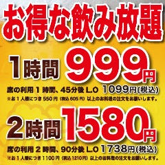 忘年会・新年会のご予約、絶賛受付中です!お気軽にお問合せください。 ☆★☆ 完全個室 ☆★☆ 6名様以上で貸し切り可能♪ ご予約優先です。 ●〇● 単品飲み放題 ●〇● ☆1時間1099円、2時間1738円で飲み放題できます♪ 詳しくはコースをクリック♪ ◇◆◇ おすすめメニュー ◇◆◇...View More »