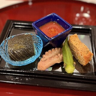 旬の食材を存分に活かしたコースは、どれも四季の移り変わりを感じさせ、五感を刺激する逸品ばかり。 当店の特等席であるカウンターの他、接待や家族団欒に最適な個室もご用意しております。 亭主の想いが込められた至極の逸品の数々、 その「盛り付けの美しさ」「温度」「香り」「歯ごたえ」「味の深み」をお愉し...View More »