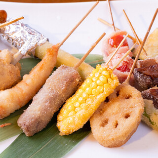 串揚げ 「絶妙の揚げ加減」と「サクサク食感」をお楽しみいただけます。 車海老はご注文いただいてから生きた状態のものを調理、下処理を施してから揚げてご提供するなど、こだわりの串揚げをご堪能ください。 焼き鳥 備長炭で1本1本丁寧に焼き上げてご提供する焼き鳥は、 身がプリプリで食ベ応えある食感が特...View More »